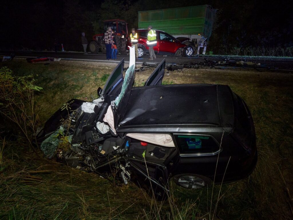 Az ütközés során mindkét autó brutálisan összeroncsolódott, az egyik egy traktor pótkocsijának is nekicsapódott.