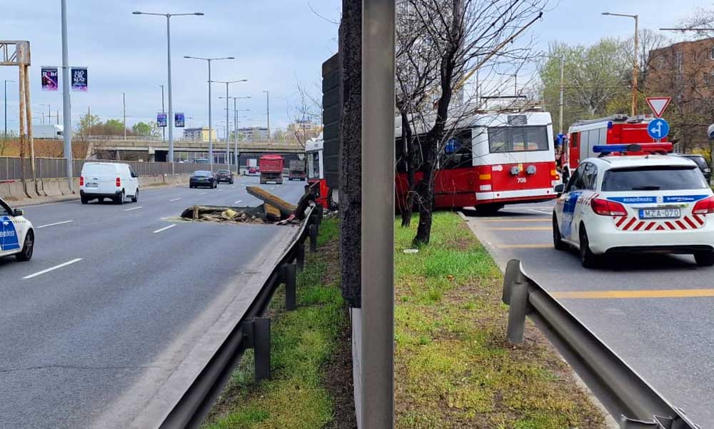 A troli fülkéjéből a tűzoltók kiszabadítottak egy embert, úgy tudjuk egy fiatal nő vezette a járművet, aki kiesett a székből. A megdőlt zajvédő fal és annak törmelékei, illetve a mentés miatt forgalmi akadály van az úton – tájékoztatott a katasztrófavédelem.