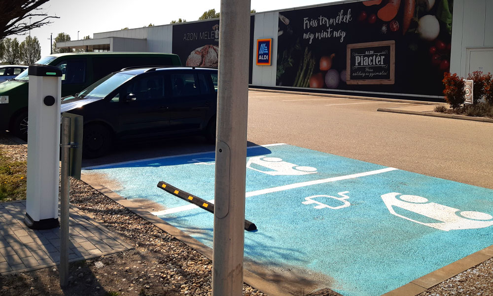 A beruházás újabb lépéseként már a következő ALDI-üzleteknél is lehetőség van az elektromos-, valamint plug-in hybrid autók akkumulátorainak feltöltésére: