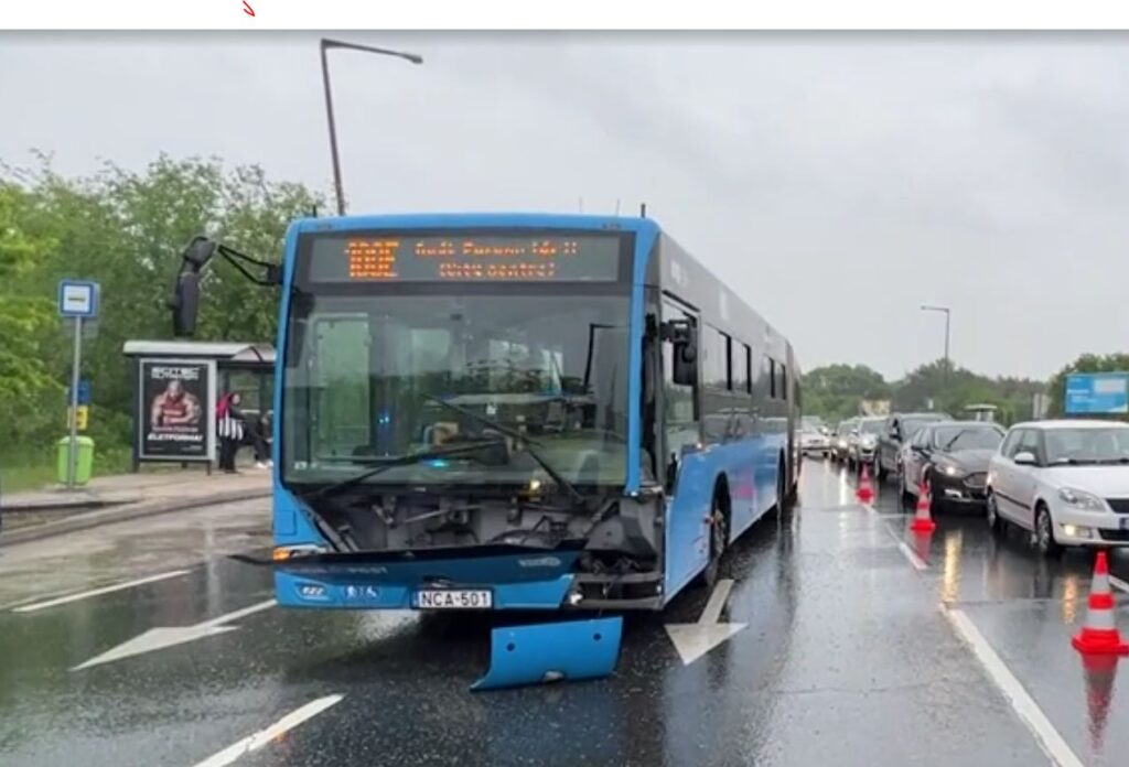 Ahogy korábban a Budapestkörnyéke.hu is megírta, jelzőtáblának, villanyoszlopnak, majd a pirosnál álló autónak ütközött egy autóbusz Budapest 12. kerületében, a Széll Kálmán téren. Az autóbusz vezetője rosszul lett, újraélesztették, majd kórházba vitték.