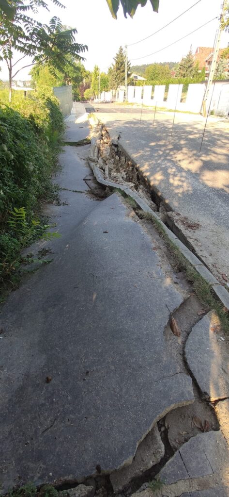 Az RTL Híradó kereste a kivitelezőt is, hogy mikor és mit tesznek annak érdekében, hogy ne csússzon tovább az utca, választ azonban tőlük nem kaptak. A probléma nem új keletű: mint idén januárban hírt adtunk róla, az év elején egy hatalmas gödör keletkezett a járdán, amelyet nem kerítettek el, így az balesetveszélyessé vált.