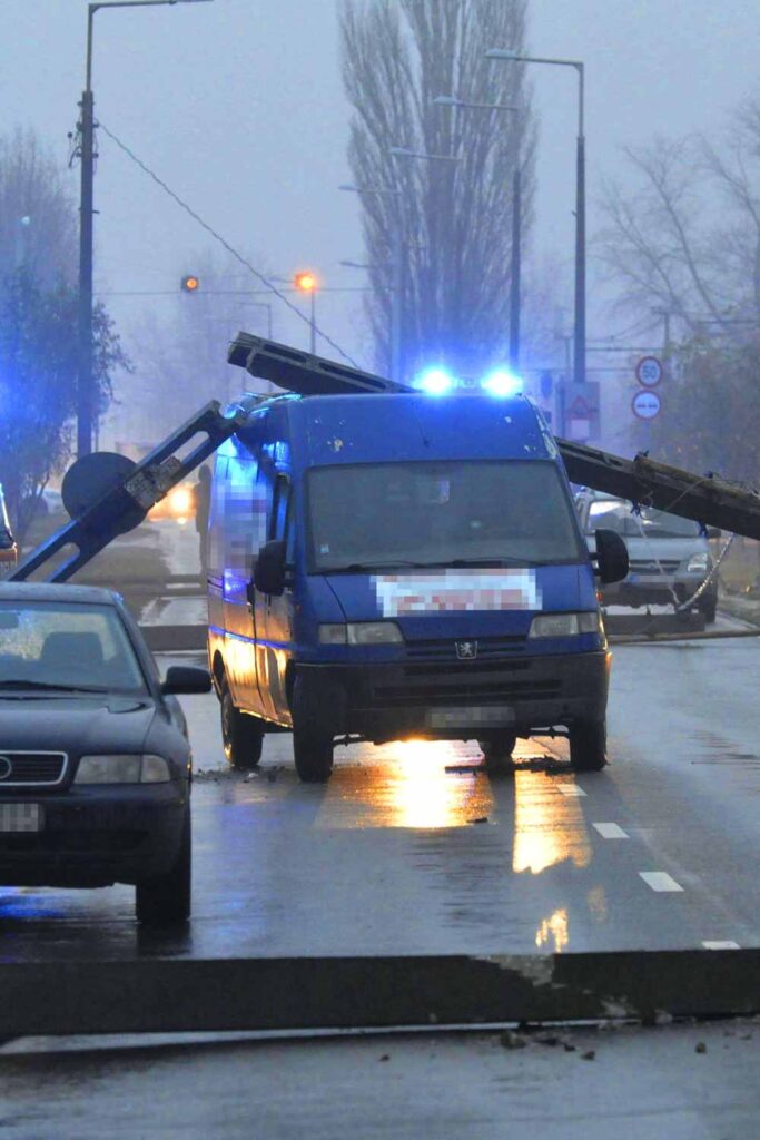 A baleset során az egyik autó villanyoszlopnak ütközött, amely következtében egy villanyoszlop kidőlt, majd egymás utám még hét oszlop dőlt el.