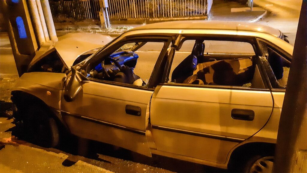A személyautó nagy sebességgel keresztül hajtott az utca végén található S-kanyaron, amit nem tudott teljes mértékben bevenni. Ennek következtében a sofőr a Vörösmarty iskola előtti útszakaszon elvesztette uralmát a gépjármű felett, a gyalogátkelőhelyet elválasztó járdaszigetnek és a rajta található jelzőtáblának ütközött, majd a szemközti oldalon, a már a Csapó utcában álló villanyoszlopnak csapódott.