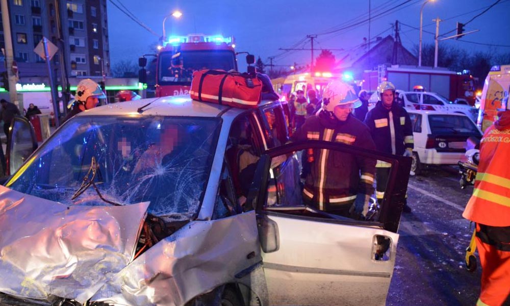 Őket a tűzoltók szabadították ki feszítő-vágó-berendezés segítségével. Az Üllői út érintett szakaszát a műszaki mentés idejére le kellett zárni.