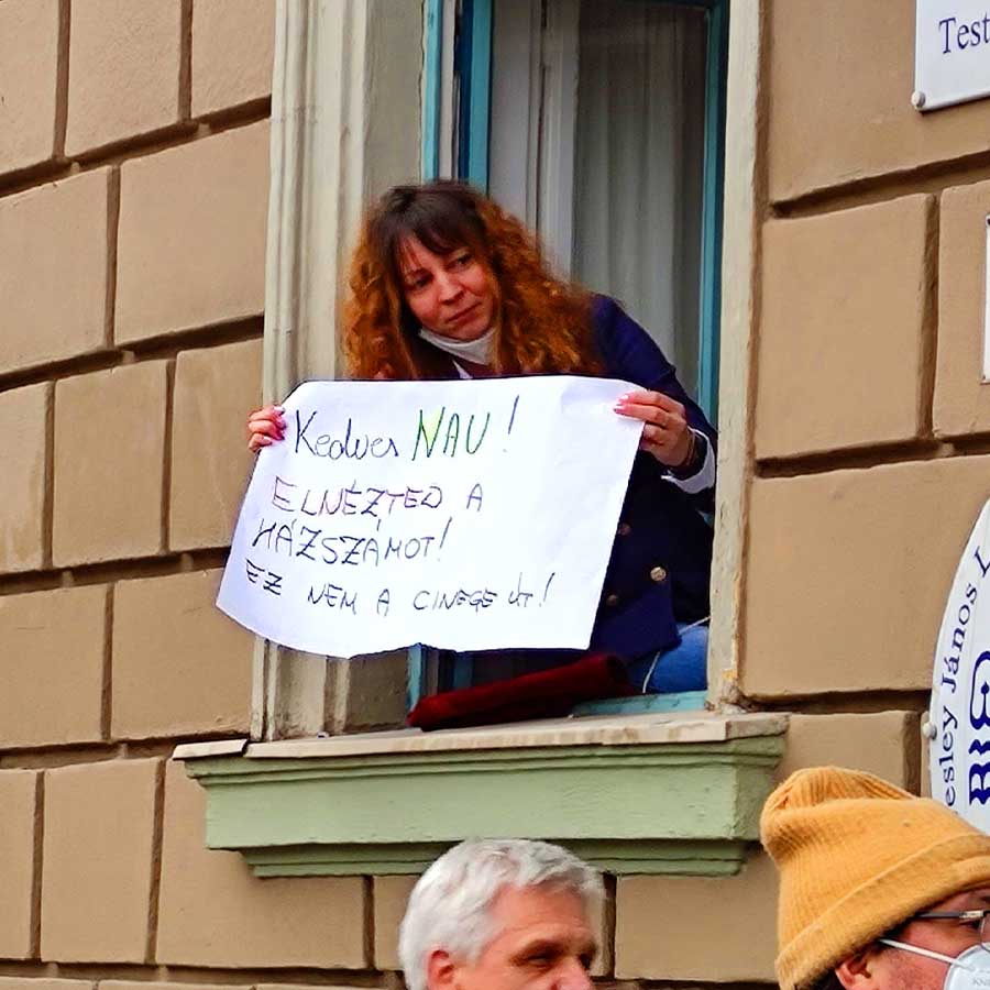 15 órára a Párbeszéd demonstrációt hirdetett a Dankó utcai épület elé. A tiltakozáson megjelent többek közt Szabó Tímea, Dobrev Klára, Donáth Anna, Szél Bernadett és Jószai Teodóra, valamint körülbelül 200 szimpatizáns.