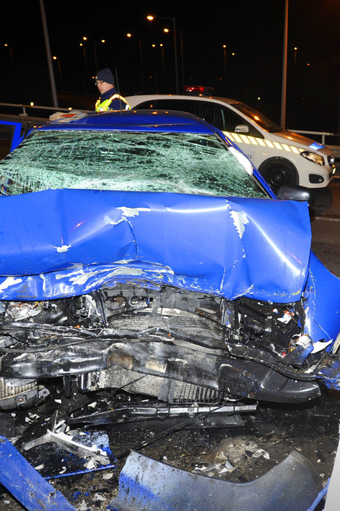 Eddig tisztázatlan körülmények között március 22-én 1 óra 43 perckor Budapest 14. kerületében, a Kacsóh Pongrác úti felüljárón egy autó villanyoszlopnak ütközött.