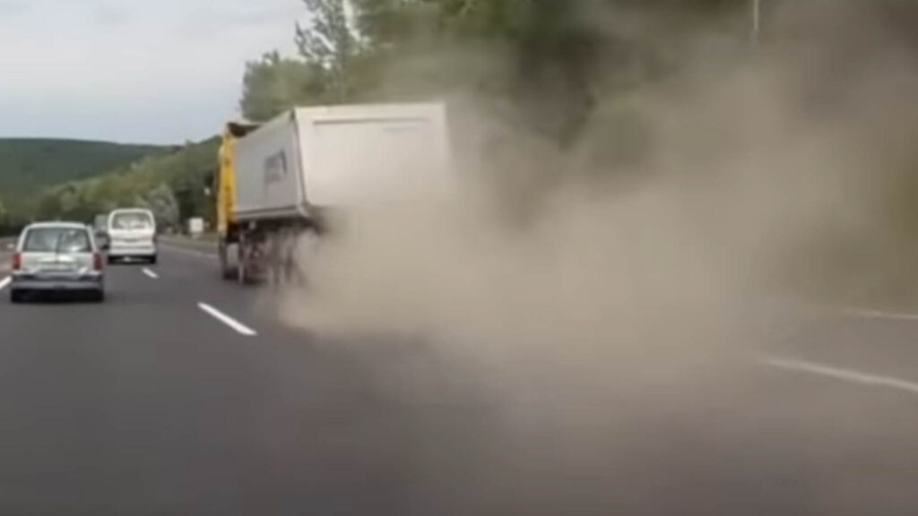 Így robban szét egy kamion gumija menet közben az M3-ason (Videó)