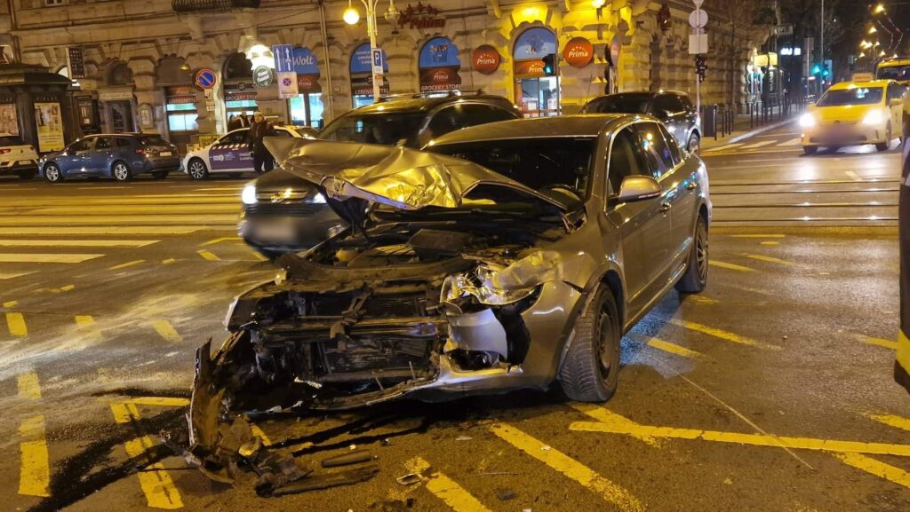 Szombat este egy Skoda Superb megkülönböztető jelzéssel, a megengedett sebességnél gyorsabban haladt a belvárosi Teréz körúton, a Nyugati tér irányába. A Podmaniczky utcai jelzőlámpás csomóponthoz érve a jelzőlámpa pirosat jelzett, de a szirénázó Skoda fiatal sofőrje nem lassított, behajtott a kereszteződésbe.