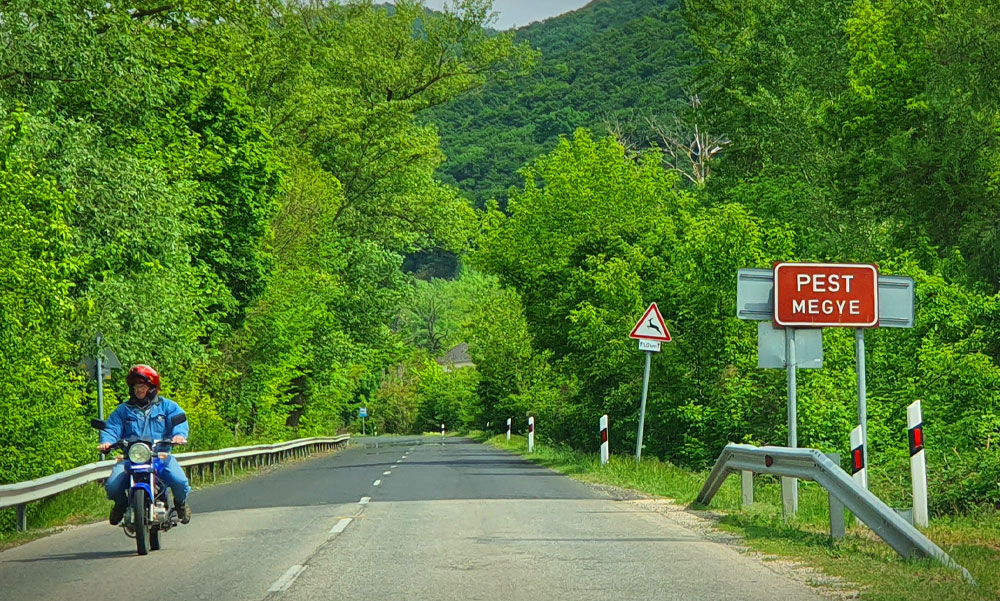 Pest megye határát jelző tábla a 11-es úton a Dunakanyarban