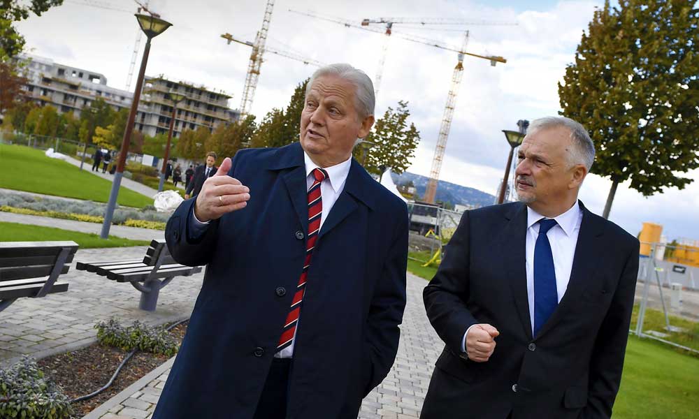 Az fenti képen Tarlós István, főpolgármester és Hernádi Zsolt, a MOL-csoport elnök-vezérigazgatója látható az alapkő letételének helyszínén.