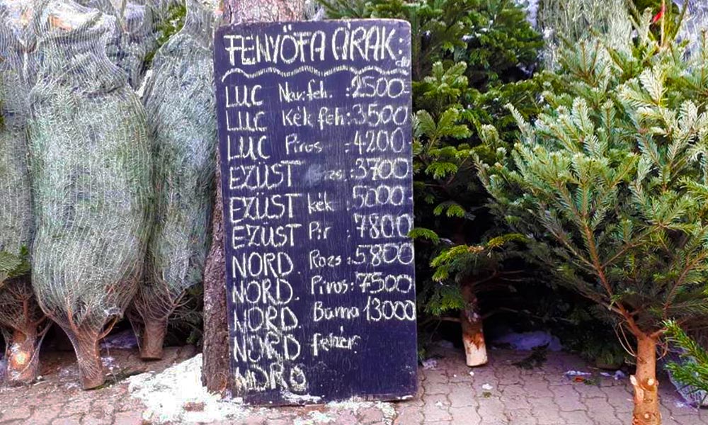 Az agglomerációban szinte minden sarkon, parkolóban, kertészetnél és a zöldségesek előtt fenyőfát árulnak. Már csak pár nap van hátra karácsonyig, a legtöbb vásárló az utolsó pillanatokra hagyja a fenyő beszerzését. Az árakban nagy a szórás, ez azt jelenti, hogy mindenki olyan fenyőt vehet, amelyet megengedhet magának.