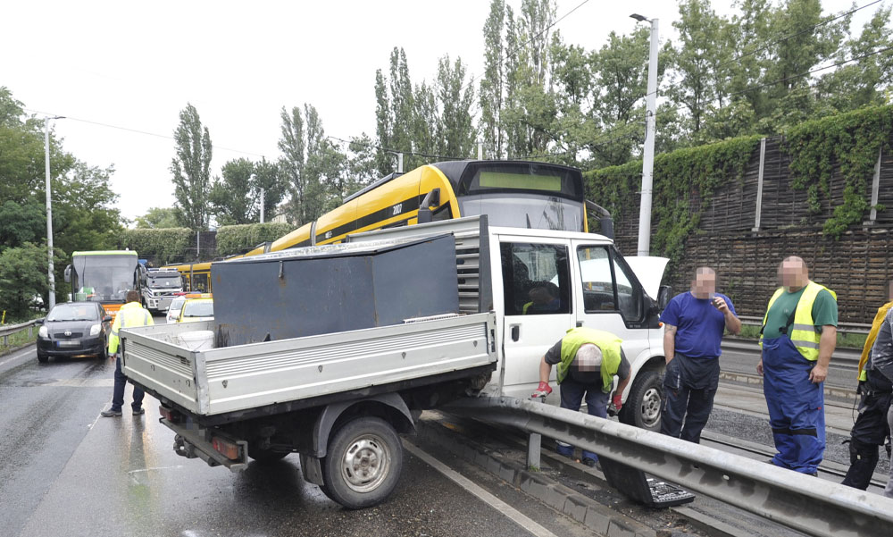 Összeütközött egy teharautó egy villamossal a 11. kerületben a Szerémi úton. Ha jobban megnézzük a fotót, nagyon furcsa dolgot veszünk észre.