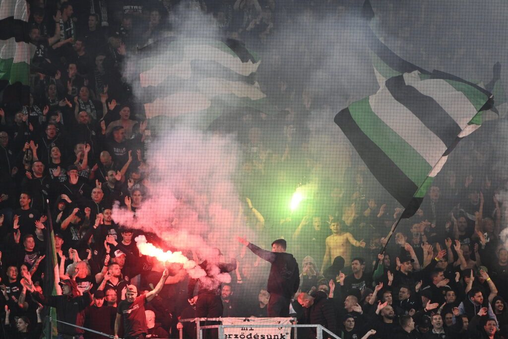 (Kiemelt képünkön a Fradi-tábor látható a Crvena Zvezda elleni meccsen. Fotó: MTI/Illyés Tibor