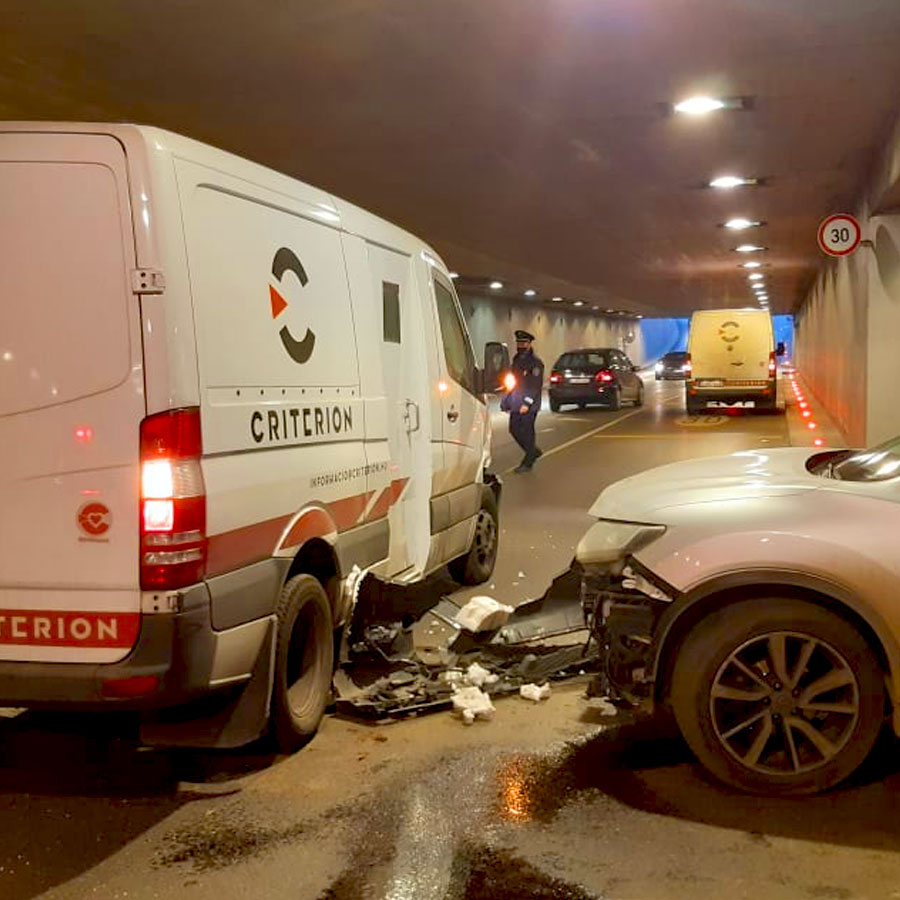 Egy pénzszállító autó és egy személyautó ütközött Budapesten, a 11. kerületben. A baleset az Allee Bevásárlóközpont mélygarázsában történt.