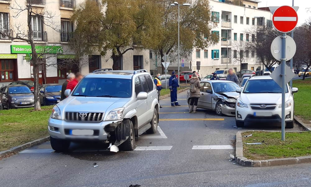 Nem sokkal korábban baleset történt a Tabánban is, ott szintén egy terepjáró volt az egyik érintett, vélhetően az egyik autó nem adott elsőbbséget a másiknak a kereszteződésben.