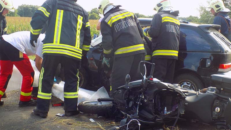 A katasztrófavédelemtől kapott fényképeken jól látszik, hogy sok tűzoltó vonult a helyszínre. Úgy tűnik, a Suzuki gyakorlatilag totálkárosra tört és szinte biztos, hogy a motort sem érdemes már megcsináltatni.