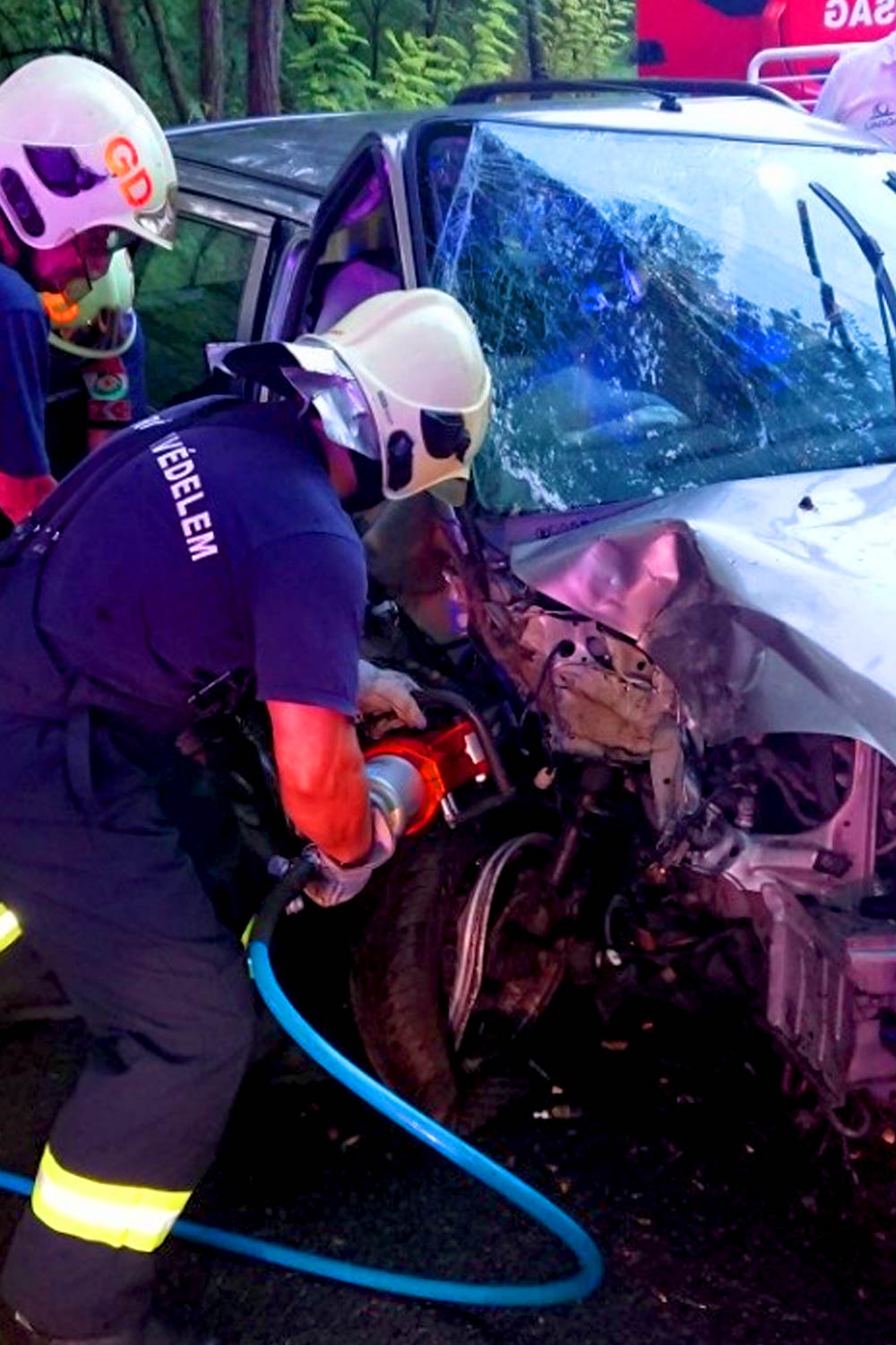 Az autó totálkárosra tört, hárman utaztak benne. Az ütközés következtében az egyikük a roncsba szorult, majd a mentők ellátták a sérüléseit.