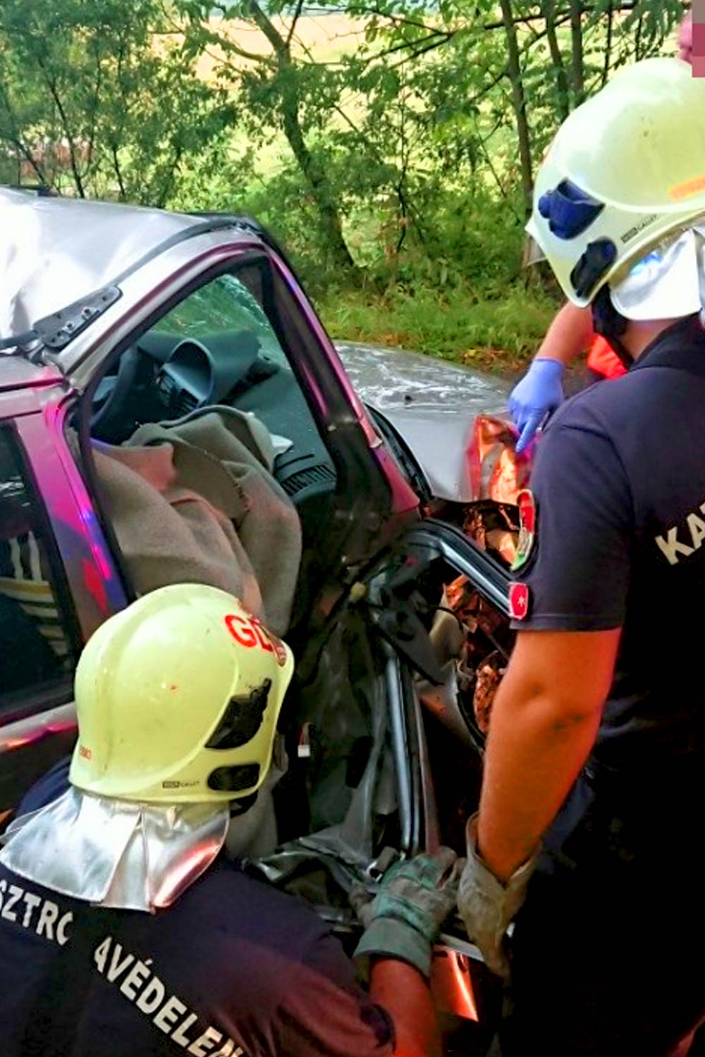 Az autó totálkárosra tört, hárman utaztak benne. Az ütközés következtében az egyikük a roncsba szorult, majd a mentők ellátták a sérüléseit.