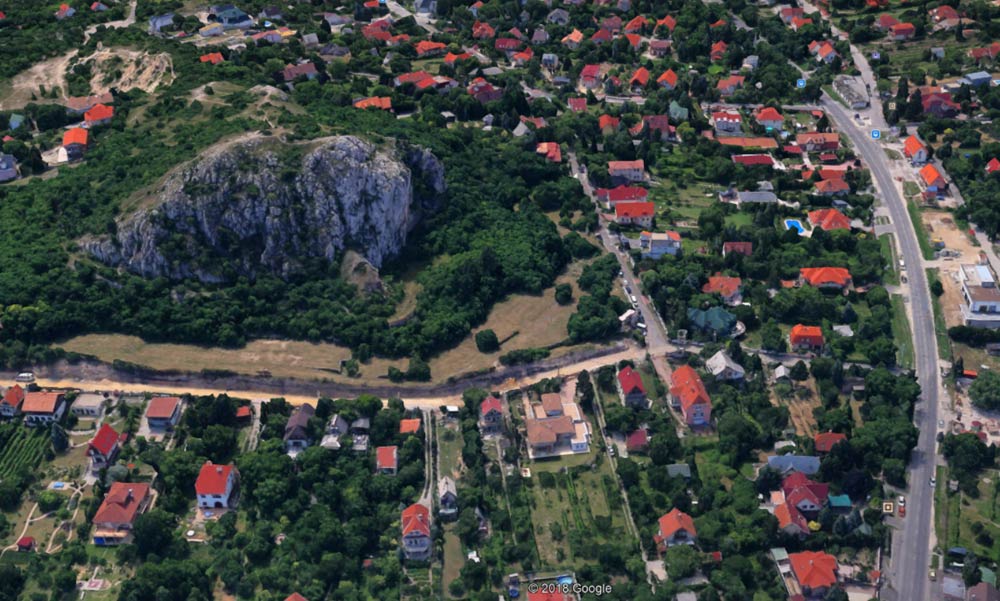 A házak teljesen körbeveszik, van köztük úszómedencés luxusvilla és meglehetősen lepattant házikó is. A hegy a Budai tájvédelmi körzet része, de nem mindig volt ez így, erről tanúskodik az Ikea felöli oldalán a mészkőkőbánya.