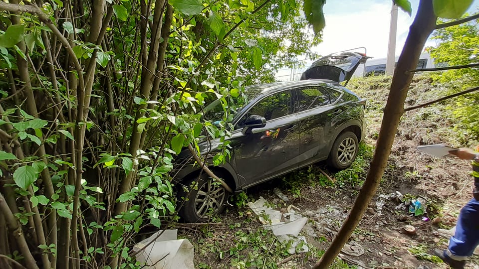 Az is szerencse, hogy miután elvesztette uralmát a jármű felett, még tudott fékezni, így az ütközés és a zuhanás nem nagy sebességgel történt, ezért is maradt a jármű a kerekein.